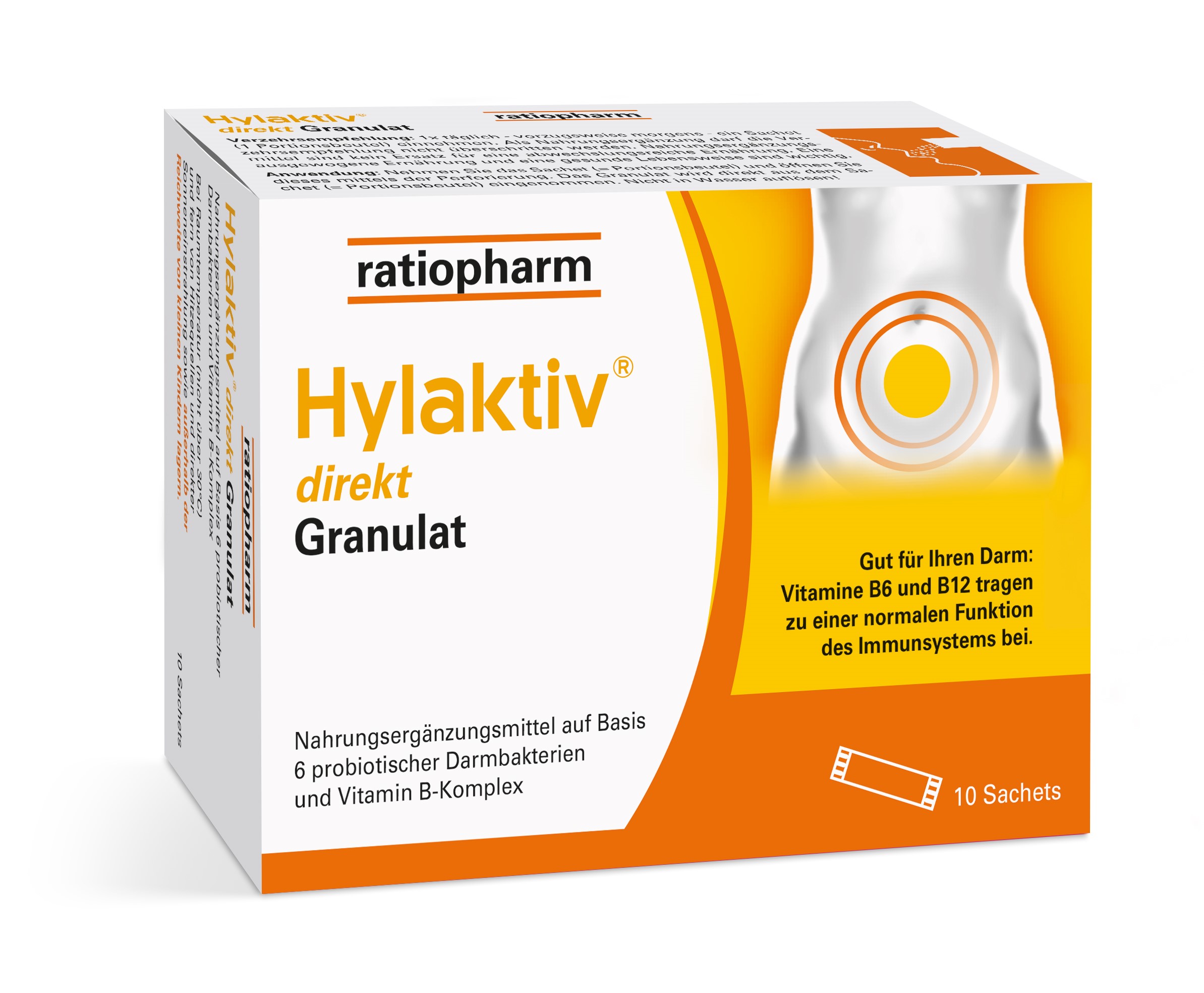 Tun Sie Ihrem Darm etwas Gutes und unterstützen Sie ihn. Hylaktiv® reguliert die Darmflora mit einer einzigartigen Wirkkombination aus 6 probiotischen Lebendkeimen und Vitaminen des B-Komplexes.